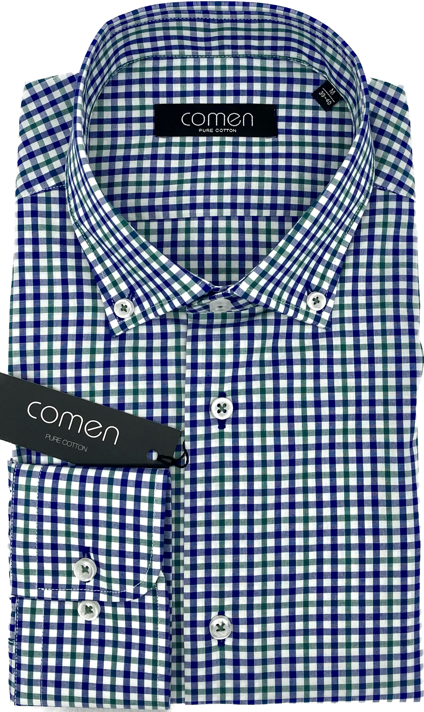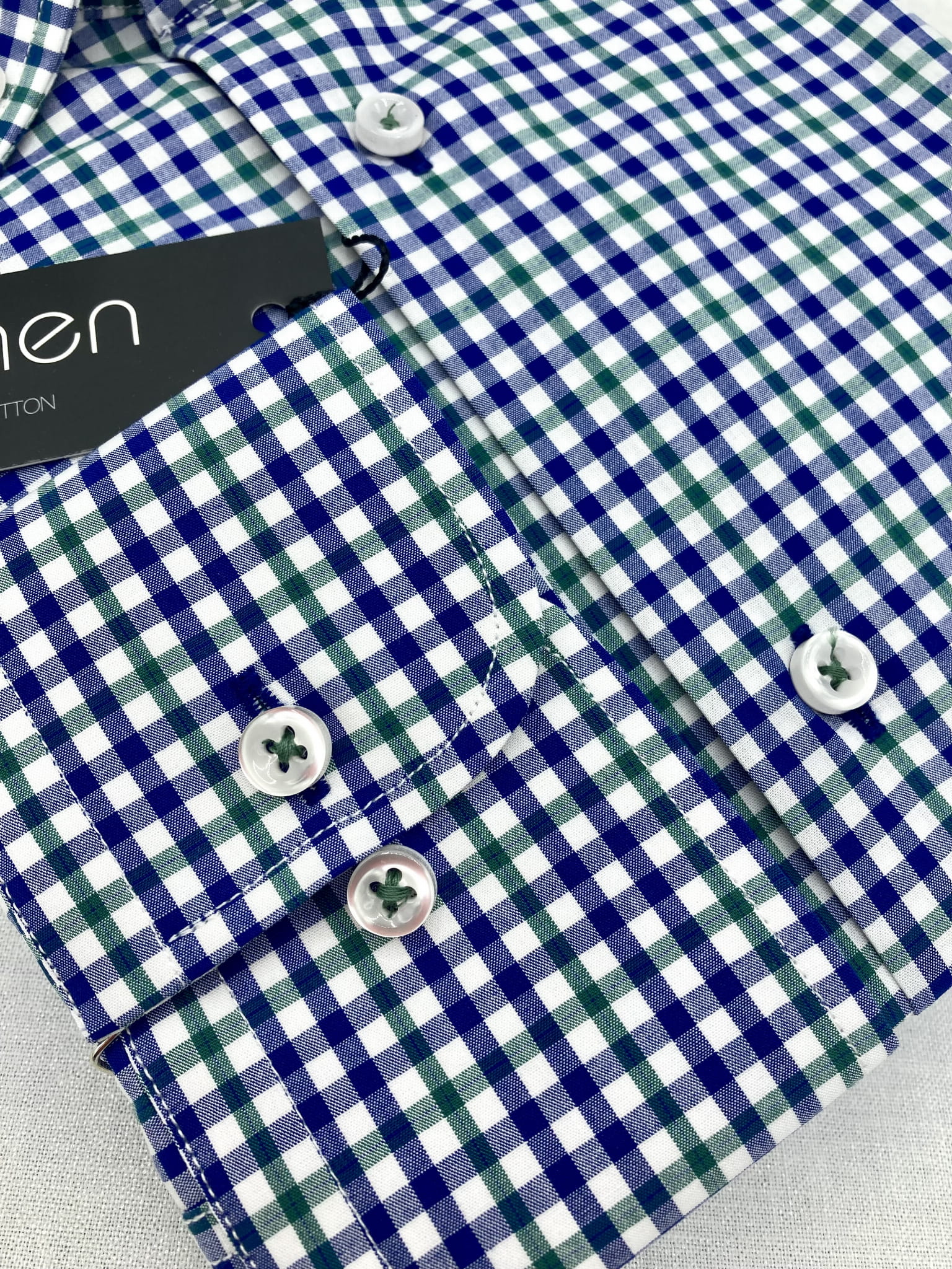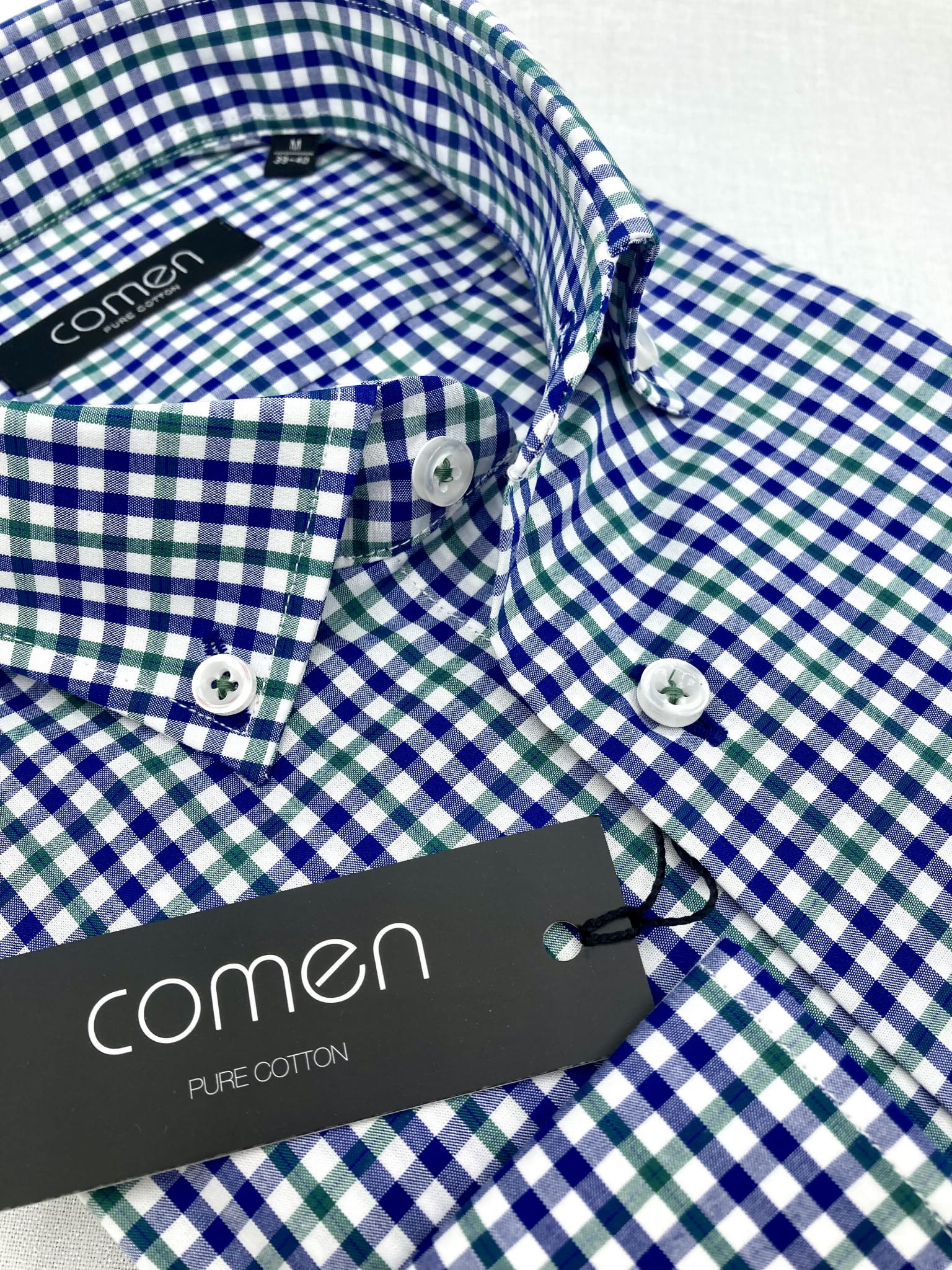 Koszula w granatowo-zieloną kratę. Uszyta w Polsce ze 100% bawełny, co sprawia że koszula jest wygodna i łatwa w codziennym użytkowaniu